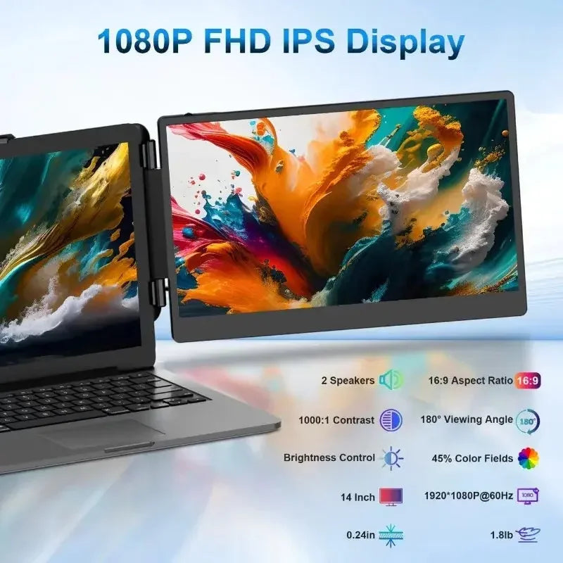 Laptop Screen Extender: 14-inch FHD IPS Dual/Triple Monitor, Plug‑and‑Play